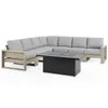 Montauk Weathered Wood Polymer with Cushions 8 Piece Modular Sectional 52 x 32 in Black Sintered Fire Pit Table