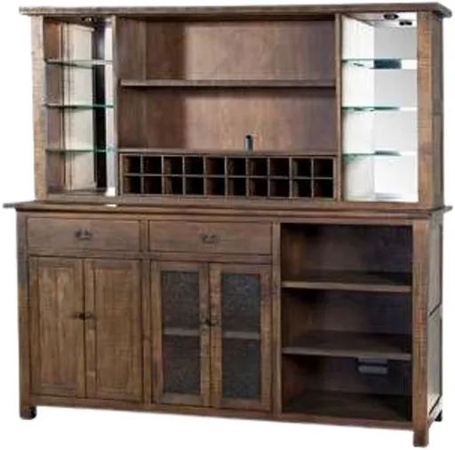 The Sunny Designs Homestead tobacco leaf hutch and buffet offers generous storage with multiple cabinets, drawers, and shelves. Ideal for dining or entertaining areas, it helps organize dishes, glassware, and other essentials while keeping them easily accessible for everyday use.