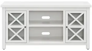 Combine functionality and on-trend design with this sturdy Eve TV stand. Its rich wood tone creates a warm neutral palette that will blend seamlessly into any color scheme, while its crisscross-accented cabinet doors add a touch of modern farmhouse whimsy. A must-have for living areas and entertainment spaces, this TV stand sets the stage for the big game, a movie marathon, or that season finale everyone's been talking about.