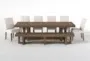 Palazzo Brown Rectangular Solid Pine Wood 106" Dining With Bench + Garten Chino Side Chair Set For 10