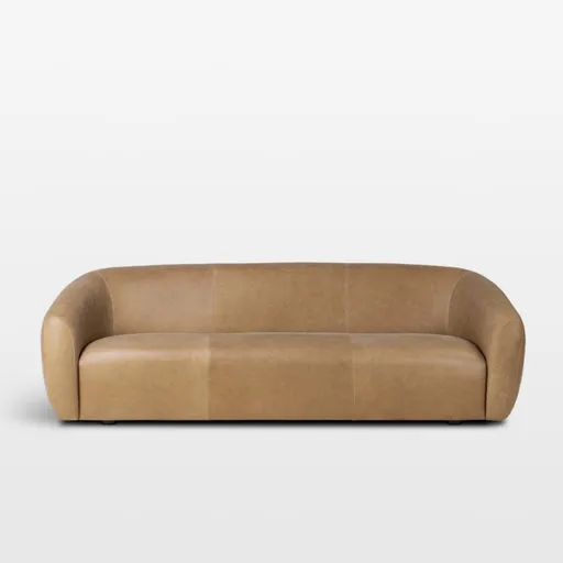 Inspired by vintage furniture, Ryder brings indulgent comfort to the timeless simplicity of modernist design. Curving contours flow arm to back, embracing a boldly proportioned waterfall seat. Impeccably tailored in top-grain taupe leather, the sofa indulges with a buttery hand and the soft support of foam-and-fiber cushioning.
