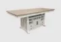Transform your dining room or kitchen with the Amery White + Brown Multicolor Wood Two Tone 72-90" Kitchen Island Counter Height Table. Perfect for food prep and serving, this rectangle-shaped table combines Cotton-colored wood with practical storage solutions. Enjoy the convenience of wine storage, drawers, and adjustable features in one stylish piece.