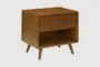The Evan Brown Pecan Wood 1-Drawer Nightstand is a beautiful addition to any bedroom, embodying the timeless appeal of mid-century modern design. This versatile nightstand combines functionality with style, offering ample storage space with its drawer and open shelf. Its rich brown wood finish and tapered legs enhance its retro charm.