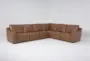 Introducing the Ryker Brown Natural 6 Piece Leather Power Reclining Modular Sectional, designed to bring comfort and style to your living space. This modern sectional features two armless chairs and adjustable headrests, ensuring a personalized seating experience. The fawn-colored leather upholstery adds a touch of sophistication to any room.