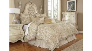 Give your room a classic, updated look with the Luxembourg 12-pc. Queen Comforter Set by Michael Amini. The set features a beautiful large-scale frame design with embroidered gold accents, complementing the neutral soft sand color ground. We are mixing a classic design with modern accents. Decorative pillows have beautifully coordinating trims, removable covers and feather fill. The 3-pc. adjustable bedskirt has a 21" drop. The entire set gives a unique sophistication to the master retreat. Included is 1 comforter, 2 standard shams, 2 euro shams, 1 bed skirt, and 6 decorative pillows that are feather filled.