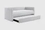 The Luella Grey Twin Corduroy Upholstered Daybed with Twin Trundle is a perfect blend of casual and modern style. Its gray corduroy fabric upholstery adds a touch of elegance to any room, while the sturdy plywood frame ensures durability. The pull-out trundle bed with casters provides an extra sleeping space, making it ideal for guests or sleepovers.