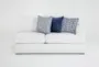 Designed and made exclusively by Living Spaces with comfort, style and practicality in mind, our Anacapa right arm facing loveseat checks all the boxes. Modular in nature, the collection includes small and large configurations to fit your space perfectly. Deep and plush seating is hard to resist, while accent pillows add all that jazz and pizzazz with a timeless blue palette you'll love. Best of all, the high-performance, solution-dyed polyester cover is durable, bleach cleanable and fade resistant.