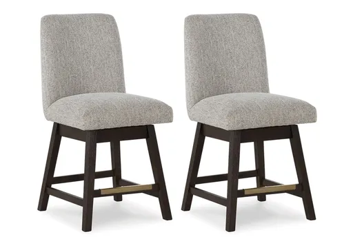 Dressed to thrill, the Burkhaus counter height bar stool offers a high-design look at a down-to-earth price. Ultra-sleek lines are accentuated with a dark waxy brown oak-tone finish that’s so easy on the eyes. Suitably upholstered in a tweed-like neutral fabric, the softly contoured back design is tailor-made for comfort. Whether it's part of a dining arrangement or used as extra seating, this timeless bar stool has a look that’s made to last.