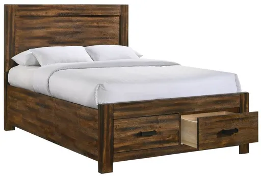 The Warner Full Platform Storage Bed gives your bedroom the warm and cozy look you are missing. It features rich espresso knobs, clean lines, and beautiful distressing throughout. The footboard includes two drawers for ample storage so you can stay organized.