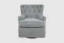 The Christiana Grey Fabric Swivel Accent Arm Chair is a perfect blend of traditional and classic styles, designed to add a touch of elegance to any room. Upholstered in a soft ash-colored fabric, this chair features a firm comfort level, making it both stylish and supportive. The tufted back and nailhead trim add sophisticated details, while the swivel base and reversible cushion offer practical functionality. This design is the perfect bedroom chair, reading chair, club chair or accent chair for living room.