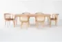Rooted in Japanese and Scandinavian "Japandi" design, the Mariko dining set was developed by Living Spaces as a part of a whole-home collection that brings simplicity, functionality and natural beauty to your space. Mixed materials - including solid birch, ash veneer, faux leather and raw natural rattan that patinas and darkens over time - enrich and add character to the pieces. Tapered legs that sit at an angle complete the look, which offers mid-century modern elements. The extension dining table features an 18" leaf that provides enough room for more guests to join the party.