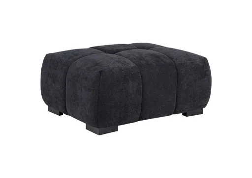 Lush and sculpted, this rectangular ottoman is a visual and tactile delight. Wrapped in soft black fabric, its deep channel tufting flows over a pillowy surface, inviting feet to rest or trays to perch. Designed to complement its matching pieces or stand boldly on its own, it offers softness, presence, and undeniable style. Built from durable materials, it brings both comfort and modern drama to any space.