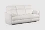 Experience ultimate comfort and convenience with the Rayna Ivory Plush Channeled 88" Power Reclining Sofa with USB. This casual reclining sofa features a soft Mega Ivory color and is upholstered in 100% polyester high performance fabric, ensuring durability and ease of maintenance. The tight back design and integrated USB ports make it a practical addition to any living room setup.