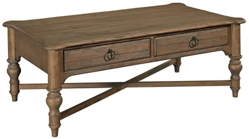 Weatherford was inspired by an old farmhouse and the weathered wooden fence that traced around it. This solid wood coffee table brings that casual, timeless style into the living room. Simple turnings and purposeful cross-stretchers keep the look relaxing and the table sturdy. It also includes two convenient soft-close drawers.