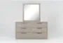 Enhance your bedroom with the Harland Grey Wood 6-Drawer Dresser with Mirror. This modern dresser, finished in Dorian grey, is a perfect blend of style and functionality. Constructed from solid pine and mirrored glass, it offers ample storage with its six spacious drawers and an attached mirror.