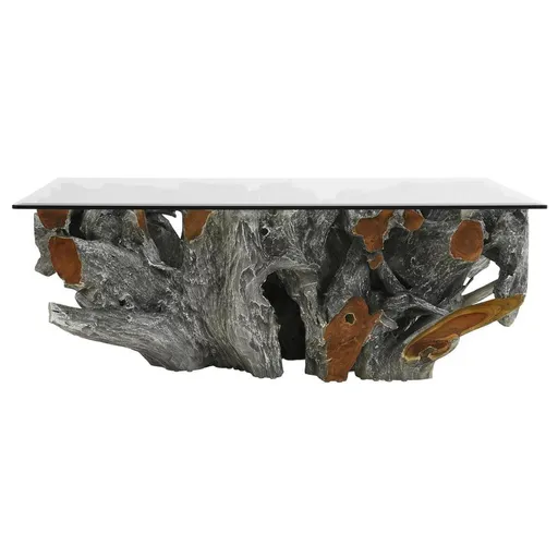 With the Archie Gray Coffee Table, you'll be able to appreciate nature’s beauty every single day. This tree-inspired piece is made of solid teak wood, featuring a gray-distressed finish and detailed grain patterns. Enhanced with a protective lacquer coating, this table also includes a rectangular, beveled-edge glass top that contrasts beautifully against the wooden tones.