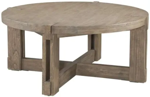 The McGuire Cocktail Table seamlessly blends modern rustic farmhouse charm with enduring craftsmanship. Crafted from solid mindi wood in a natural finish. The distinctive interlocking wood beams in the base create an open, airy feel while maintaining a substantial presence. The natural finish adds warmth and authenticity to your surroundings.