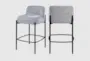 The Senton Grey Chenille Upholstered 32.5" Stool with Black Leg Frame Set of 2 offers a stylish and comfortable seating solution for your modern home. The soft grey chenille fabric provides a luxurious feel, while the matte black metal frame adds a sleek, contemporary touch. Perfect for any modern or mid-century modern decor, these stools are both functional and aesthetically pleasing.
