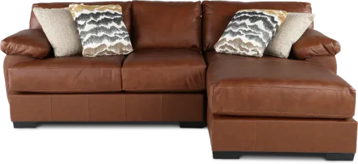 Take style and comfort to the next level with the Cody collection. Generously scaled and solidly built, this 2-piece sectional is designed for relaxation. Its laid-back contemporary silhouette is covered in warmly hued brown leather-match, while extra-deep seating and plush yet supportive cushions make unwinding hard to resist. Includes right-facing chaise and left-facing loveseat. Leather-match is top-grain leather in the seating areas with carefully matched leather-look fabric on the sides and back.
