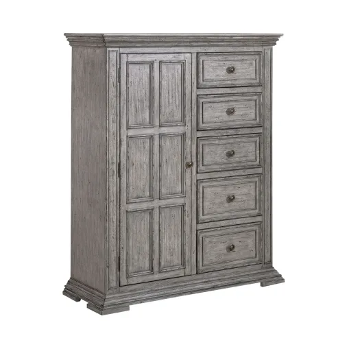 Bring high quality style to your bedroom with this relaxed vintage door chest. Thanks to its wood molding, distressed finish, and antique-like metal hardware, this piece is sure to warm up your decor with its classic look. Plus, its adjustable shelving makes it perfect for all kinds of storage.