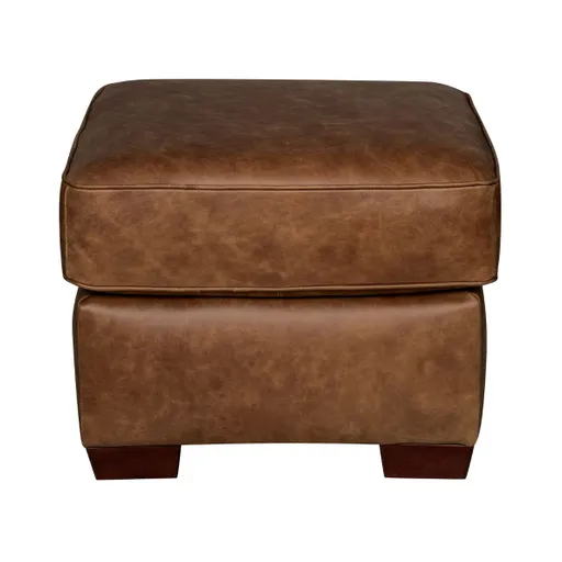 The Mark Cinnamon Leather Ottoman adds a refined urban loft touch to any space with its rich cinnamon-brown semi-aniline leather and distressed grain texture. Featuring welt stitching, espresso wooden legs, and a dense cushion top, it offers both style and comfort. Built on a durable beech and ash frame with heavy-duty corner blocks and foam-wrapped construction, this ottoman is designed to last. Natural variations in color and grain ensure each piece is one of a kind.