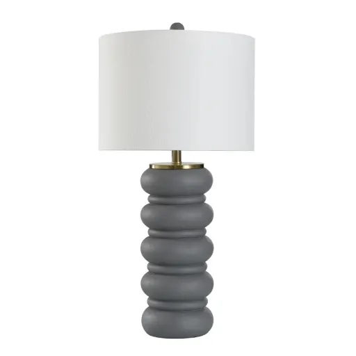 Bring a fresh, modern touch to your space with this stylish table lamp. The sculpted gray base adds bold character and texture, while the clean white drum shade softens the look with warm, inviting light. Whether it’s brightening a bedside table or anchoring a living room vignette, this lamp delivers the perfect blend of personality and everyday practicality. A simple upgrade that makes your home feel effortlessly elevated.