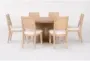The Voyage Natural 60" Round Dining Set by Nate Berkus + Jeremiah Brent is perfect for your dining room or kitchen. This modern set includes a round table and six ladderback chairs, all designed with a natural finish that complements any decor. The solid hardwood construction ensures durability and longevity.