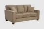 Introducing the Russell Brown 71" Fabric Earth Sofa, designed to elevate your living room with its modern style and firm comfort level. Upholstered in 100% polyester, its earth tone adds a neutral touch to any decor while the loose reversible back cushions ensure lasting comfort and versatility.