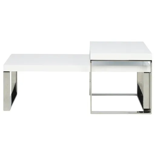 Brighten up your space with the Pokhara White Nesting Tables Set of 2. Made with wood and stainless steel, this lovely set offers a high gloss lacquer coating on each rectangular top. The minimalist style and shiny, exquisite appeal makes this duo the perfect addition to any existing decor.