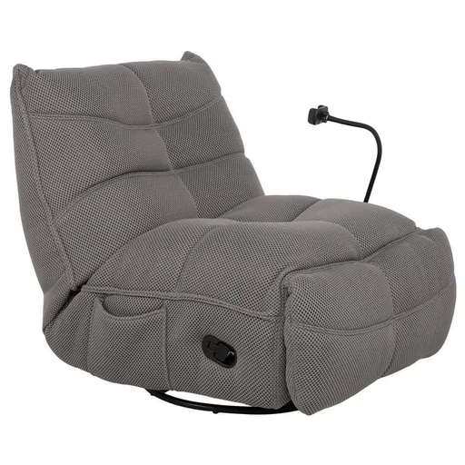 Sitting on the Wyatt Gray Swivel Glider Recliner is like relaxing on a cloud. This plush rocket recliner is made with polyester blend, and features a removable phone holder, side storage pocket, and extra comfy seating. Modern and attractive with its deep gray color, this gorgeous recliner is sure to make the perfect addition to your seating area.