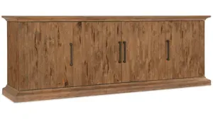 Bring home your dream of wide open spaces and a life lived in tandem with iconic landscapes with the Big Sky Media Console, crafted with authentic pecky hickory veneers and finished in the warm and rustic vintage natural. Accented by dark brushed bronze bar pulls.