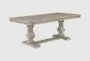 The Darlene Natural Brown Wood Rectangular Double Pedestal 95" Dining Table brings a touch of traditional charm to your dining room. Crafted from Asian hardwood, this table features a wire brushed brownish grey finish that complements any decor. With its double pedestal base and spacious rectangular top, it is designed to comfortably seat six people.