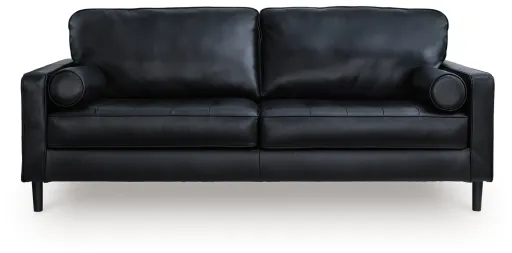 This sofa embodies timeless mid-century elegance with its linear design, sleek track arms and tapered legs. Genuine leather in the seating area adds a luxurious touch to the overall look. Experience endless style opportunities for today's living spaces.