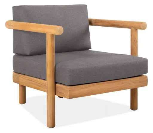 Isley is a modern outdoor lounge chair with a solid teak frame in a curved shape that supports the quick-drying outdoor cushions. Inherently durable for the outdoors, this solid teak heartwood is sustainably sourced and infuses the beauty of solid wood into your space. Over time, teak naturally patinas to a beautiful silver color.