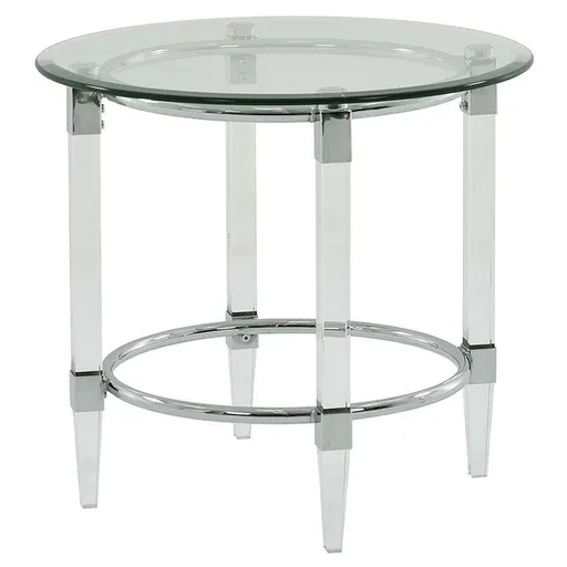 The Caroline Side Table can fit in any sized living room with thick acrylic legs and a smooth flat polished edge tempered glass top. The contemporary look of this table is complete with the sleek chrome metal accents.