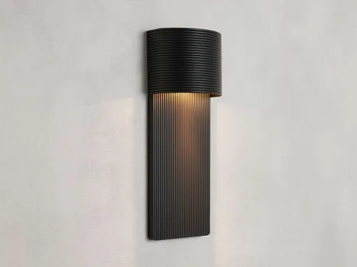 Reimagine your outdoor space with the warm glow from our modern Fultz Collection. Crafted from aluminum and stainless steel, Fultz’s cross-directional ribbed detailing adds a stunning, textural design element to any outdoor aesthetic.