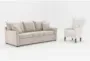 Transform your living room with the Jaylen II Sand Beige Fabric 88" Queen Sleeper Sofa and Camille White Fabric Modern Wingback Arm Chair. This casual set combines comfort and style, making it a perfect addition to any home. The sand beige fabric and natural tones create a warm and inviting atmosphere.
