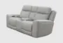 Experience the ultimate in comfort and style with the Calgary Stone Power Console Loveseat. Designed for the living room, this loveseat features a luxurious stone color and is upholstered in top grain leather with leather match. Its sleek design is complemented by an adjustable headrest, ensuring you find the perfect position for relaxation.