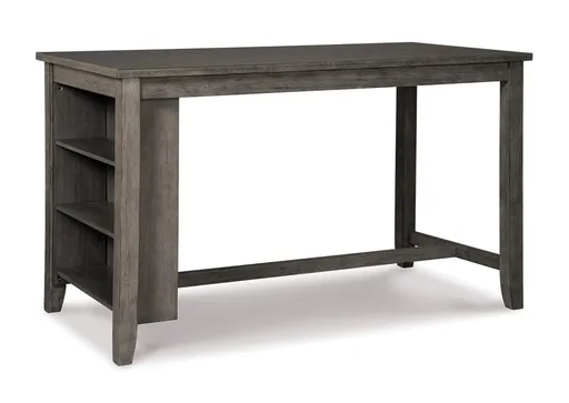 Perfect portion. Striking a simply chic pose, the Caitbrook dining room counter height table serves up high style on a smaller scale. Its antiqued gray wash finish gives the clean-lined design a casually cool sensibility. Side shelves cleverly balance form and function.
