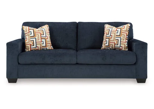 Looking to make a bold statement with color? Liven up your living room with the Aviemore queen sofa sleeper. Its trend-right navy blue upholstery adds a playful pop of color to your decor. Bold and eclectic accent pillows complete the look. Pairing posh style with everyday comfort, this piece is a welcome addition to contemporary spaces. And the queen memory foam pull-out mattress comfortably accommodates overnight guests.