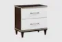 The Bristol White Brown Wood 2-Drawer Nightstand brings a touch of classic charm to your bedroom. With a beautiful 2-tone finish featuring white and cherry colors combined with gold trim, this nightstand stands out as a stylish and functional addition to your space. Constructed from cherry veneer and solid poplar wood, it offers durability and a sophisticated look.