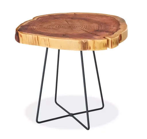 These end tables are made from solid pieces of reclaimed wood that was salvaged from fallen trees in neighborhoods along the U.S. west coast. Each top is supported by a sturdy steel base, and no two tables are the same.