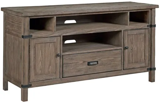 The Foundry entertainment console helps make the most out of home entertainment. Made of soild wood, it features all of the necessary storage for media components plus door storage to keep things organized.