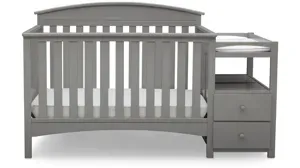 A convertible crib, a convenient changing table, even a storage piece: You'll find so many ways to use the Abby Crib and Changer by Delta Children. The adjustable crib features three different mattress height positions, and converts to a daybed with the included rail. Plus, the attached changing table with water-resistant changing pad sits above two spacious drawers and an open shelf for easy organization. Delta Children was founded around the idea of making safe, high-quality cribs affordable for all families. That's why all Delta Children cribs are JPMA certified, and are tested above and beyond industry standards.
