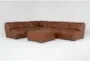 Burton Honey Brown Natural Leather 132" 3 Piece Modular L-Shaped Sectional & Ottoman | Reversible | Deep Seated