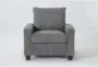 Introducing the Reid Grey Fabric Arm Chair, a perfect blend of contemporary style and firm comfort. This versatile armchair is designed to complement any living room, bedroom, or dorm, providing a cozy spot to relax. Upholstered in soft grey fabric, it features track arms and tapered legs, making it a stylish addition to your home.