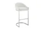 The Lorian 30" Bar Stool in Brushed Stainless Steel with White Faux Leather is a perfect blend of modern and mid-century modern styles. Its sleek design and neutral color make it an ideal addition to any kitchen or dining space. The faux leather upholstery and metal construction ensure durability and comfort.