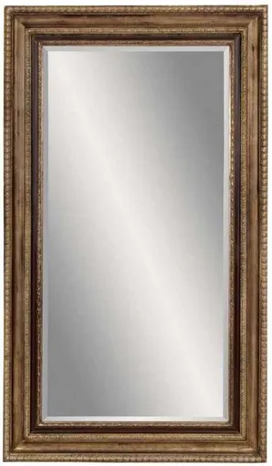 The Sergio Floor Mirror showcases a stunning beveled frame and an exquisite antique gold finish. With its traditional rectangular design, this mirror adds a touch of timeless elegance to any space. Perfect for enhancing your home decor with its classic charm and sophisticated allure.