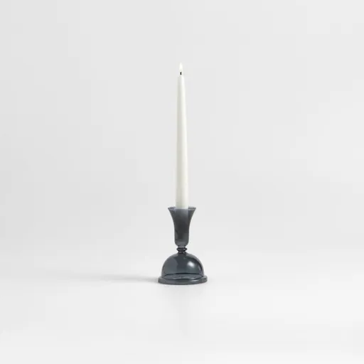 Milano reimagines vintage candlesticks, updating the ornate silhouettes with streamlined curves in indigo glass to stunning effect. Hand-blown by skilled craftspeople, this small, intricately curved candle holder culminates in an elongated cup that supports a taper or doubles as a bud vase. The modern grey-blue tint glows moodily in candlelight. Display the subtly playful piece solo for a sculptural look, or layer with other exclusive Milano glass taper holders in various heights and hues for a more eclectic, extravagant effect.