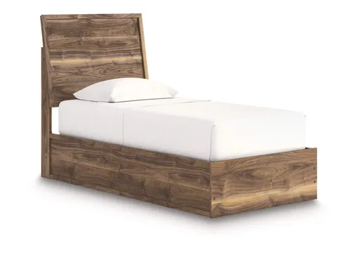 Nostalgic style, retooled for today’s trends. This twin panel bed puts an elevated twist on mod aesthetics. Its warm brown tones reflect the mid-century vibes you love, while the simple panel design incorporates contemporary motifs. Sleek and stylish, it helps you build your bedroom into a modern haven with a touch of retro-cool flair.